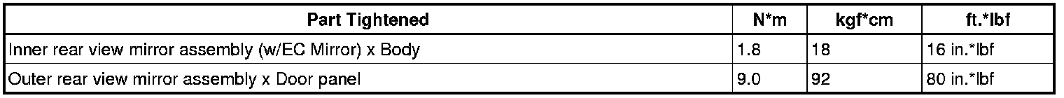 SERVICE SPECIFICATIONS: MIRROR: TORQUE SPECIFICATIONS