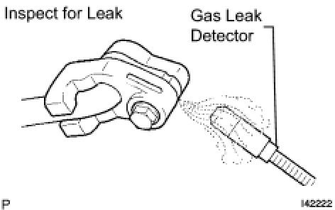 (c) Using a gas leak detector, inspect for refrigerant leak from the refrigerant lines.