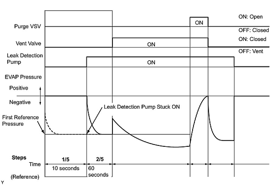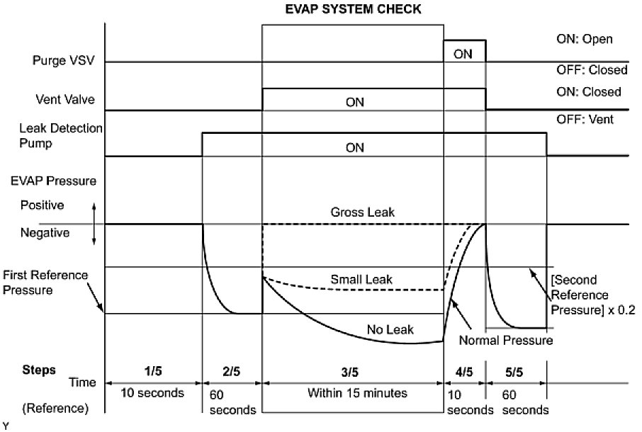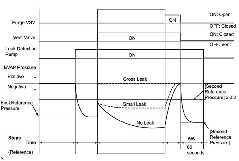 (b) Compare the EVAP pressure in step 3/5 and the second reference pressure (step 5/5).