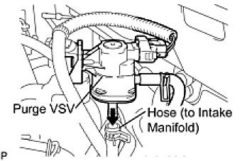 (a) Disconnect the hose (connected to the intake manifold) from the purge VSV.