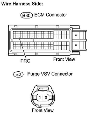 (a) Disconnect the B30 ECM connector and the B2 purge VSV connector.