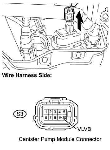 (b) Disconnect the S3 canister pump module connector.