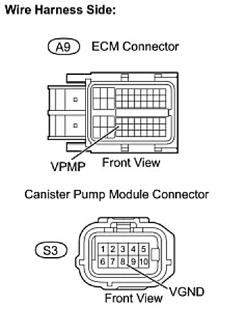 (c) Measure the resistance between VPMP terminal of the ECM connector and VGND terminal of the canister pump module connector.
