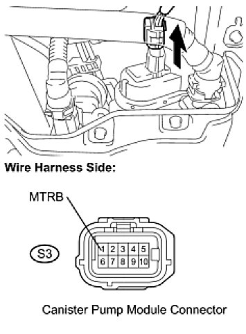 (b) Disconnect the S3 canister pump module connector.