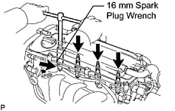 (3) Using a 16 mm spark plug wrench, remove the spark plug.