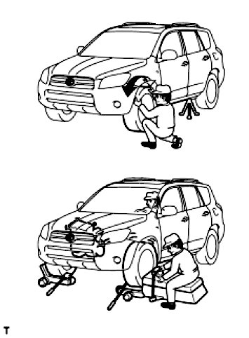 (1) Care must be taken when jacking up and supporting the vehicle. Be sure to lift and support the vehicle at the proper locations.