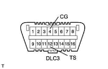 (1) Before beginning testing, disable the VSC. To disable the VSC, turn the ignition switch OFF and connect SST to terminals 12 (TS) and 4 (CG) of the DLC3.