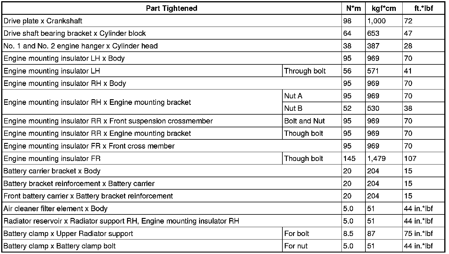 Torque Specifications