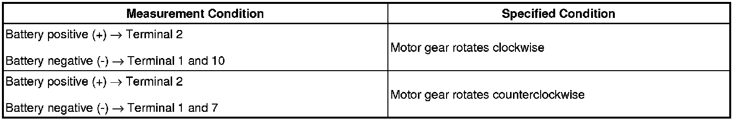 If the result is not as specified, replace the regulator motor assembly.