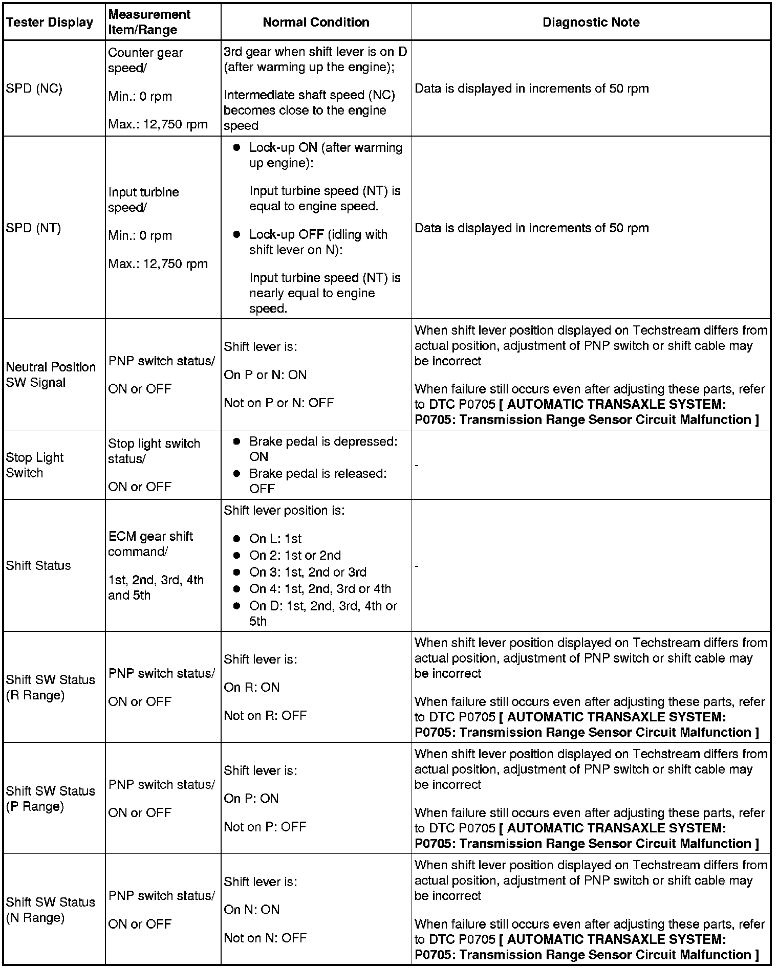 HINT: Using Techstream's Data List allows switch, sensor, actuator, and other item values to be read without removing any parts. Reading the Data List early in troubleshooting is one way to save time.