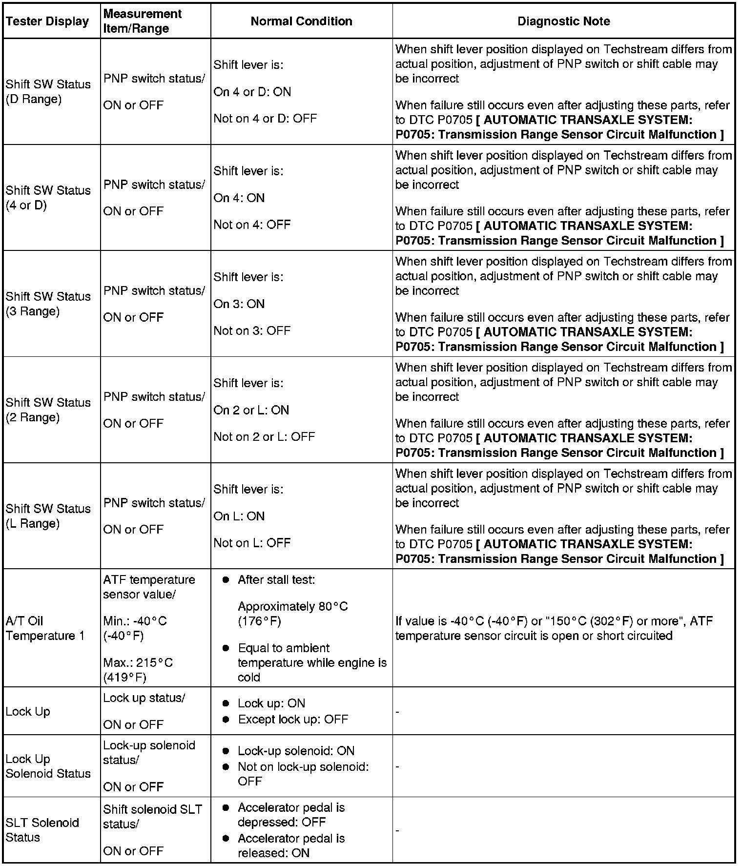 U151F AUTOMATIC TRANSAXLE: AUTOMATIC TRANSAXLE SYSTEM: DATA LIST / ACTIVE TEST