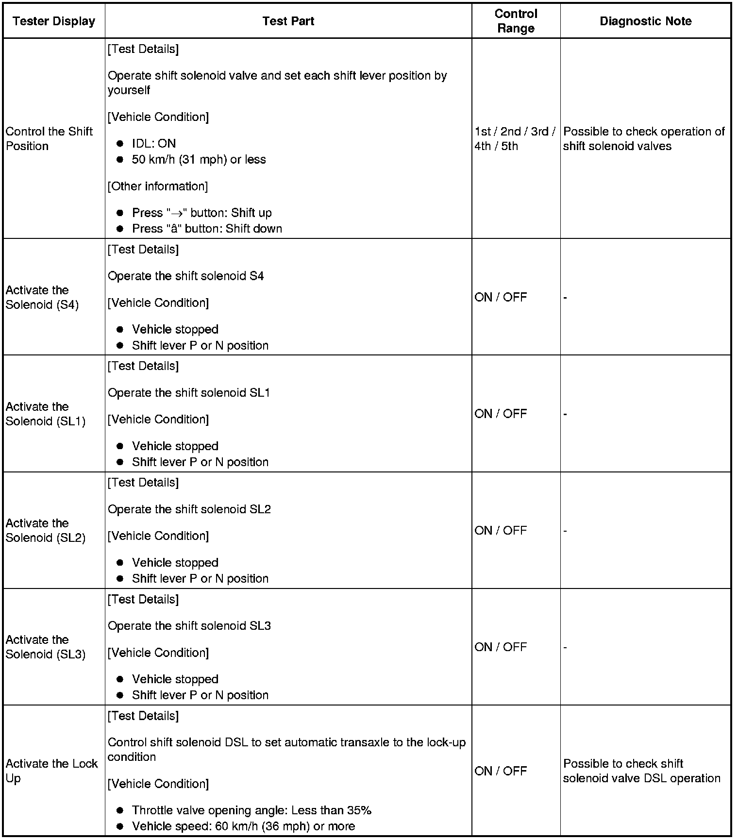 HINT: *: "Activate the Solenoid (SLT)" in the Active Test is performed to check the line pressure changes by connecting SST to the automatic transaxle, which is used in the HYDRAULIC TEST Hydraulic Test as well. Please note that the pressure values in the Active Test and HYDRAULIC TEST are different.
