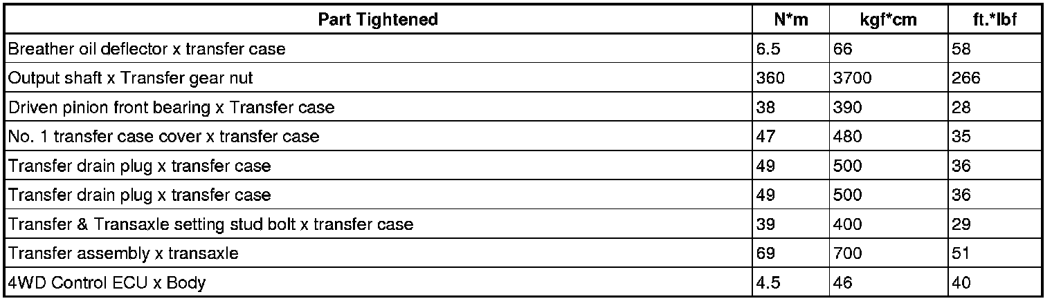 SERVICE SPECIFICATIONS: GF1A TRANSFER: TORQUE SPECIFICATIONS