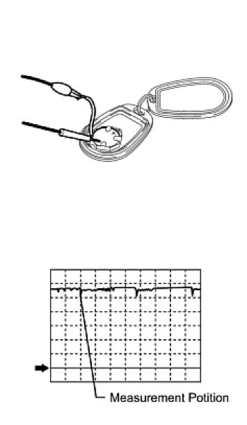 (1) Remove the battery from the electrical key transmitter that does not operate. Attach a lead wire (0.6 mm (0.0236 in.) in diameter or less including wire sheath) with tape or equivalent to the negative terminal Service and Repair.