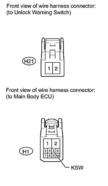 13. CHECK HARNESS AND CONNECTOR (UNLOCK WARNING SWITCH - MAIN BODY ECU AND BODY GROUND)