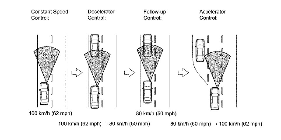 (c) The constant speed control mode is designed to maintain a constant cruising speed. The vehicle-to-vehicle distance control mode is designed to control constant speed cruising, deceleration cruising, follow-up cruising, and acceleration cruising.