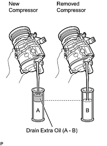 - If the amount of oil remaining in the removed compressor is too low, check for an oil leak.