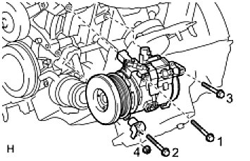 HINT: Tighten the bolts in the order shown in the illustration to install the cooler compressor.