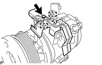 NOTE: Make sure that there is no foreign matter or oil on the compressor shaft, bolt, and clutch hub.