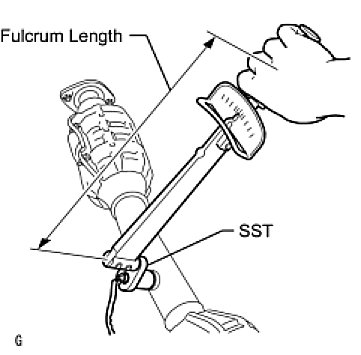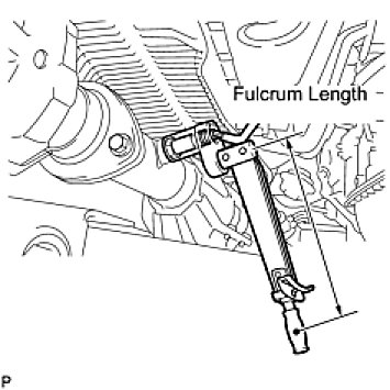 - Use a torque wrench with a fulcrum length of 30 cm (11.8 in.). If using a torque wrench with a length that is not 30 cm (11.8 in.), calculate the torque specification for the torque wrench and SST based on the "without SST" torque specification Service Precautions.