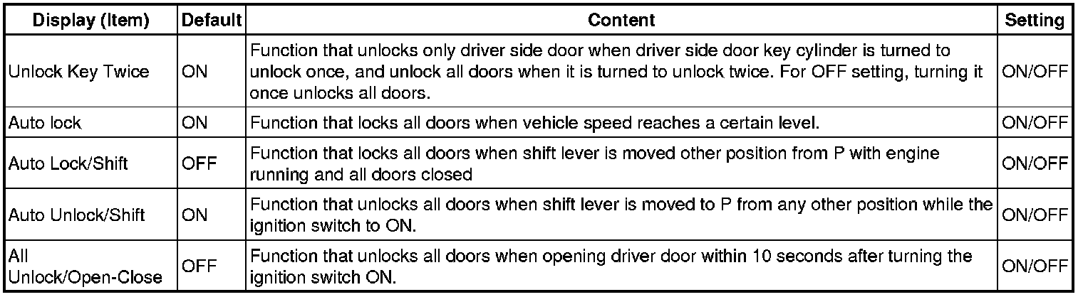 - Power door lock control system (automatic door lock function, automatic door unlock function)