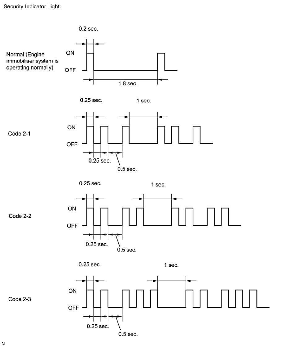 - When the engine immobiliser system is operating normally and the key is pulled out, the security indicator light blinks continuously.