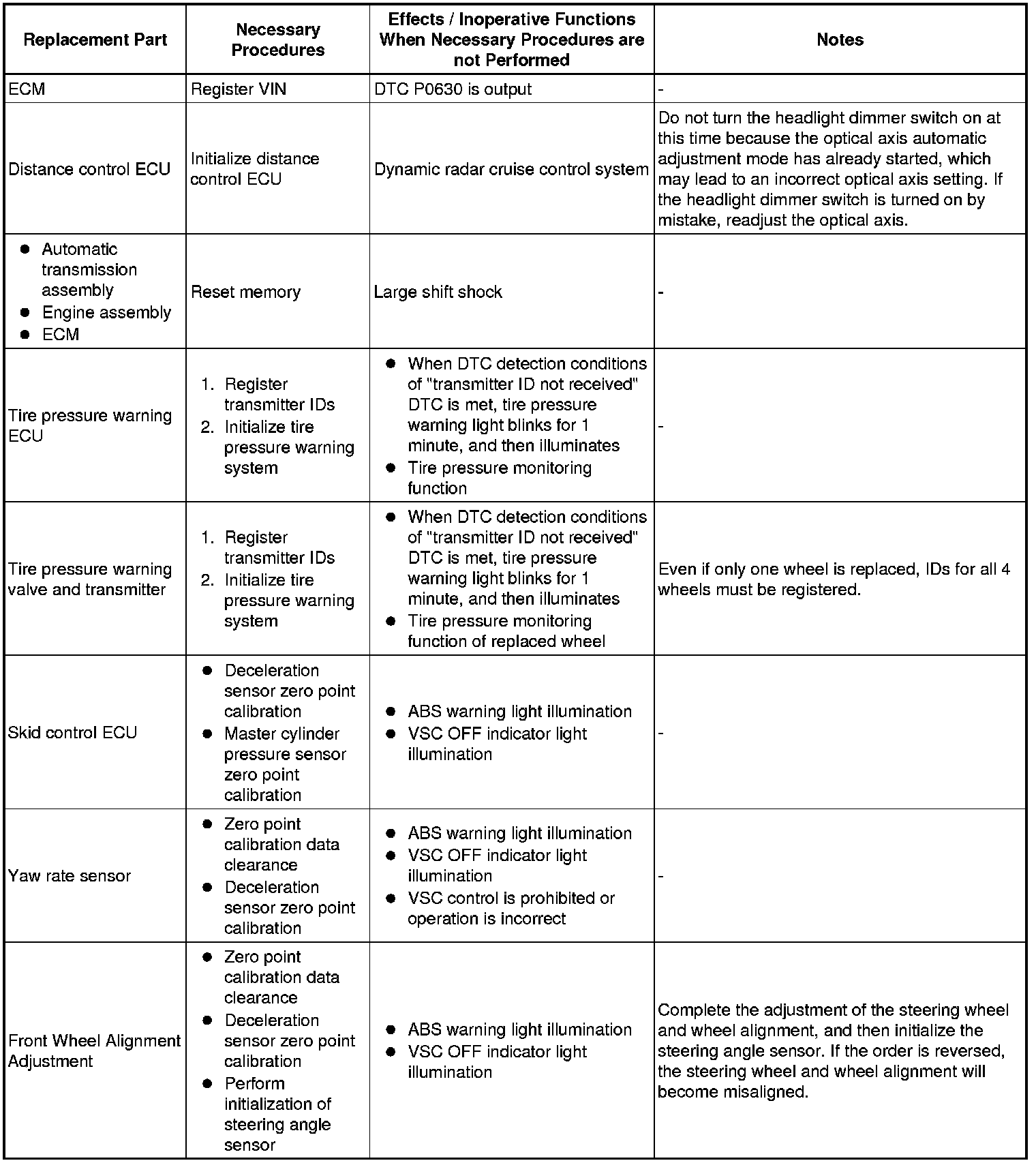 It is necessary to register the transmitter ID in the tire pressure warning ECU when replacing the tire pressure warning valve and transmitter and/or tire pressure warning ECU.