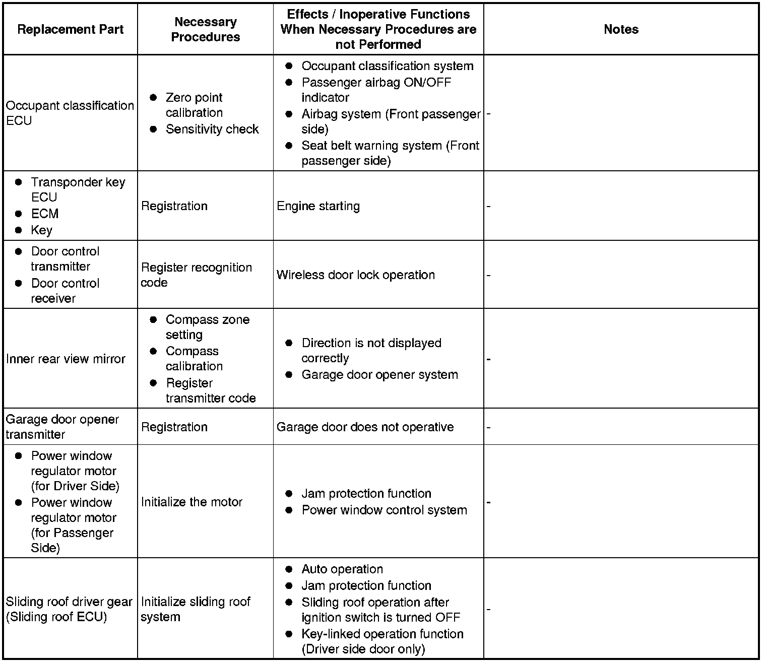 1. Procedures necessary when battery terminal is disconnected / reconnected