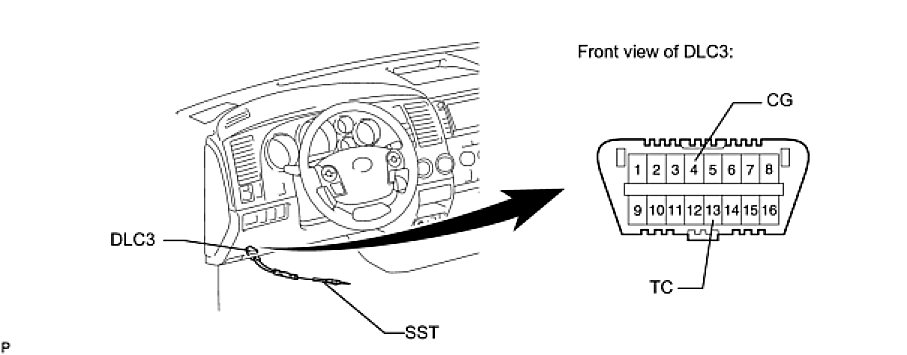(2) Using SST, connect terminals 13 (TC) and 4 (CG) of the DLC3 before inserting the key into the key cylinder.