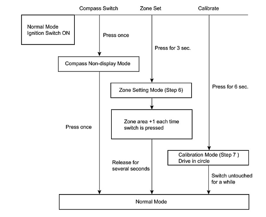 (a) Pressing the compass switch for 3 seconds in the normal mode activates the zone setting mode. A number (1 - 15) is displayed on the compass display.