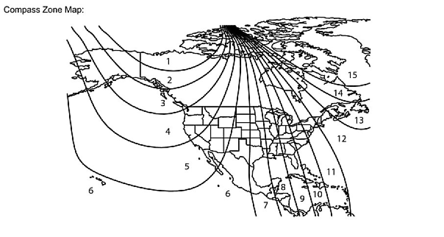 (b) The displayed number increases +1 every time the compass switch is pressed. Referring to the map, check the number for the area where the vehicle will be used and set the zone number.