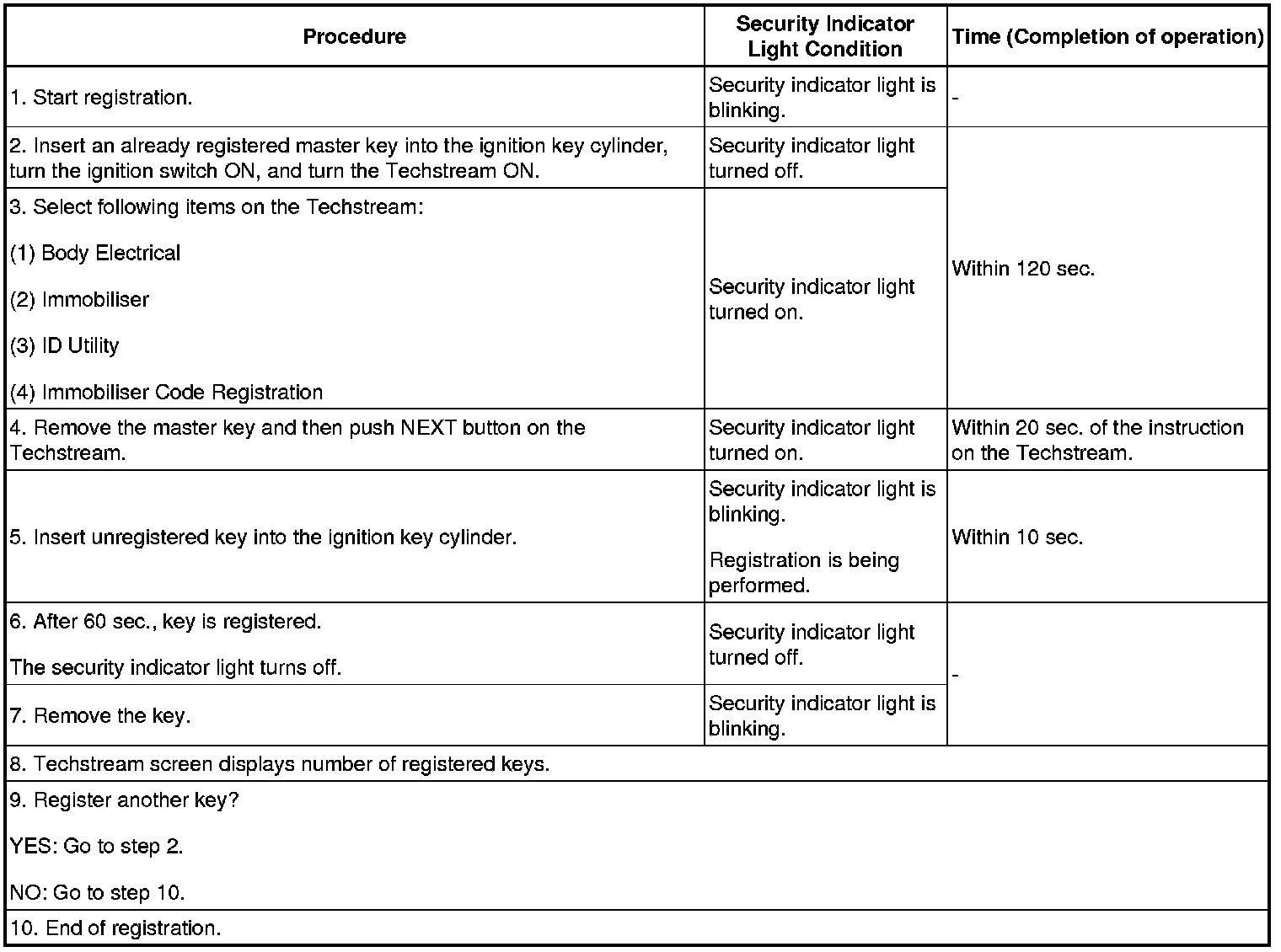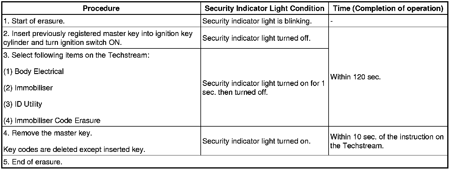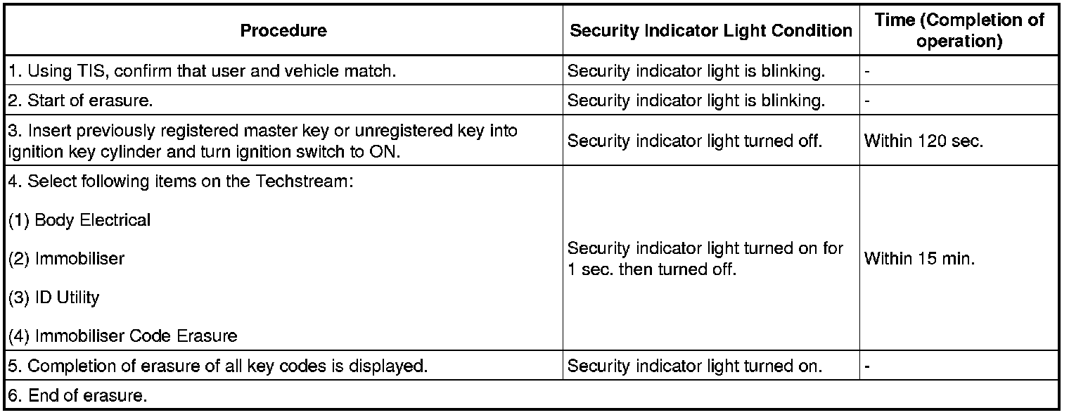 - A brief outline of the procedures for key code registration is shown above. For more detailed information, refer to the screen of the Techstream.