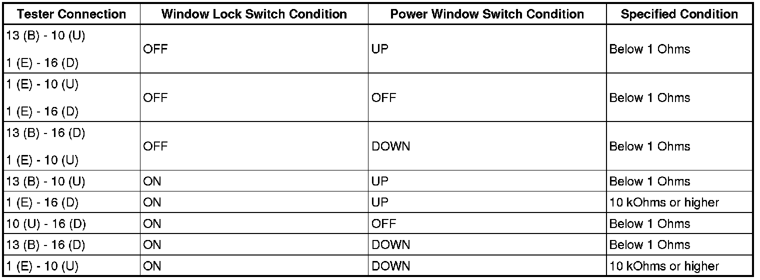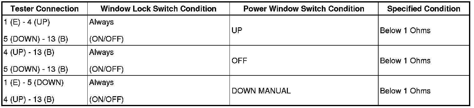 If the result is not as specified, replace the power window master switch.
