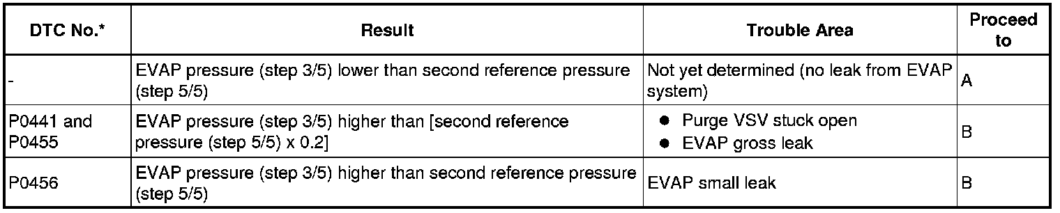 NOTE: If the reference pressure difference between the first and second checks is greater than the specification, all the DTCs relating to the reference pressure (P043E, P043F, P2401, P2402 and P2419) are stored.