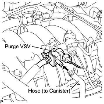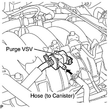 (b) Disconnect the hose (connected to the canister) from the purge VSV.