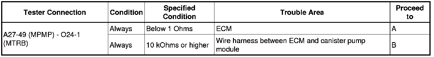 B -- CHECK HARNESS AND CONNECTOR (ECM - CANISTER PUMP MODULE)