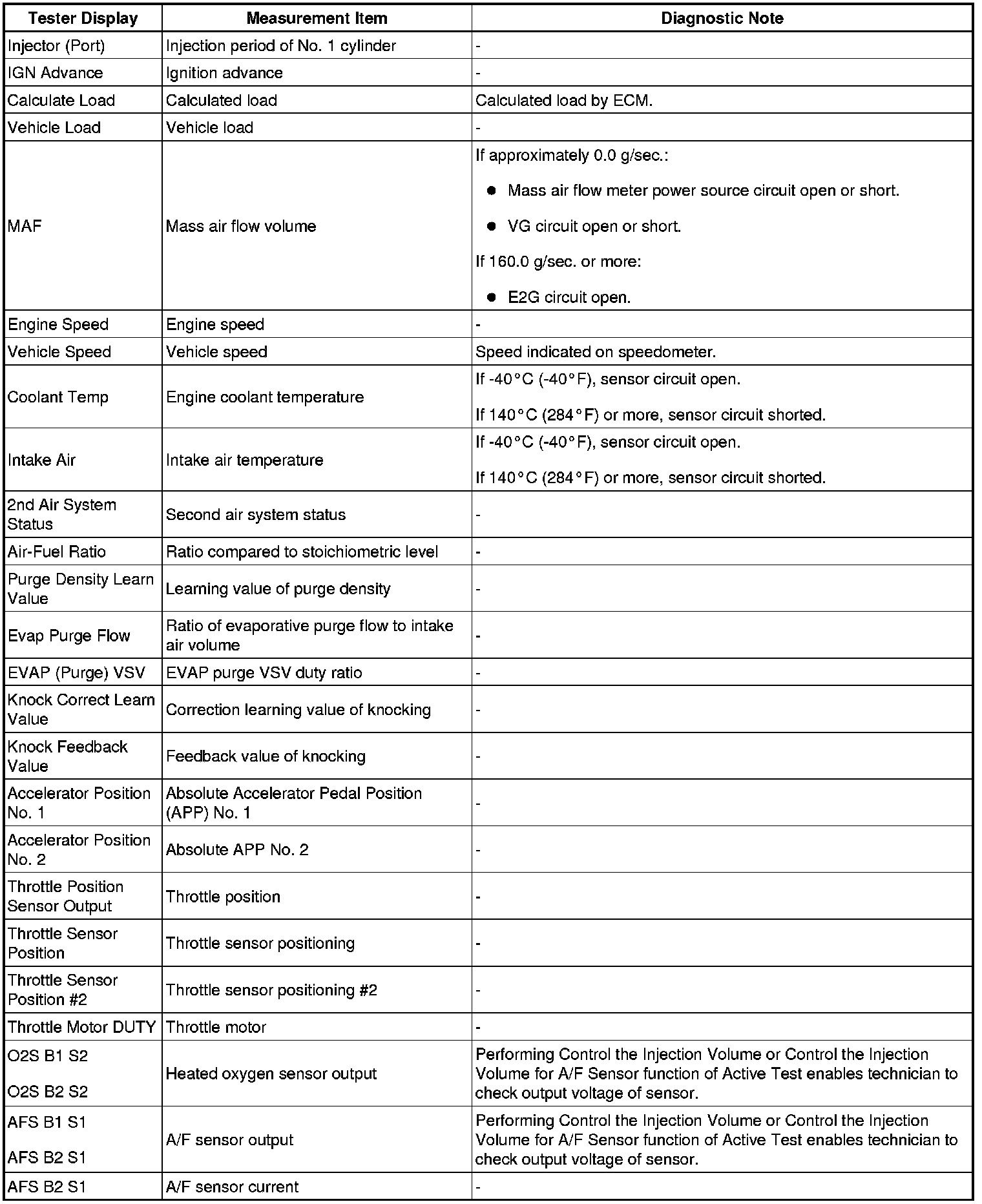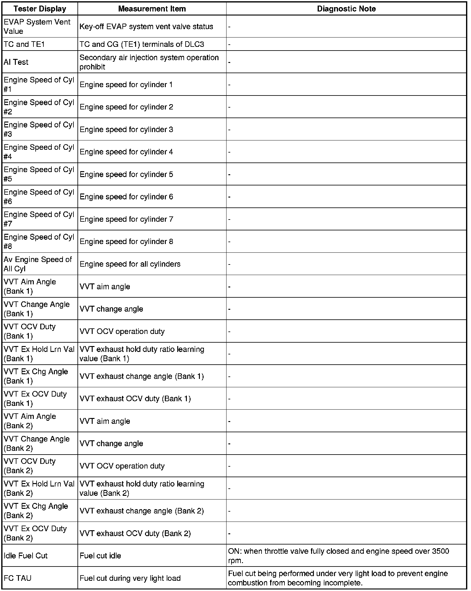 3UR-FE ENGINE CONTROL: SFI SYSTEM: FREEZE FRAME DATA