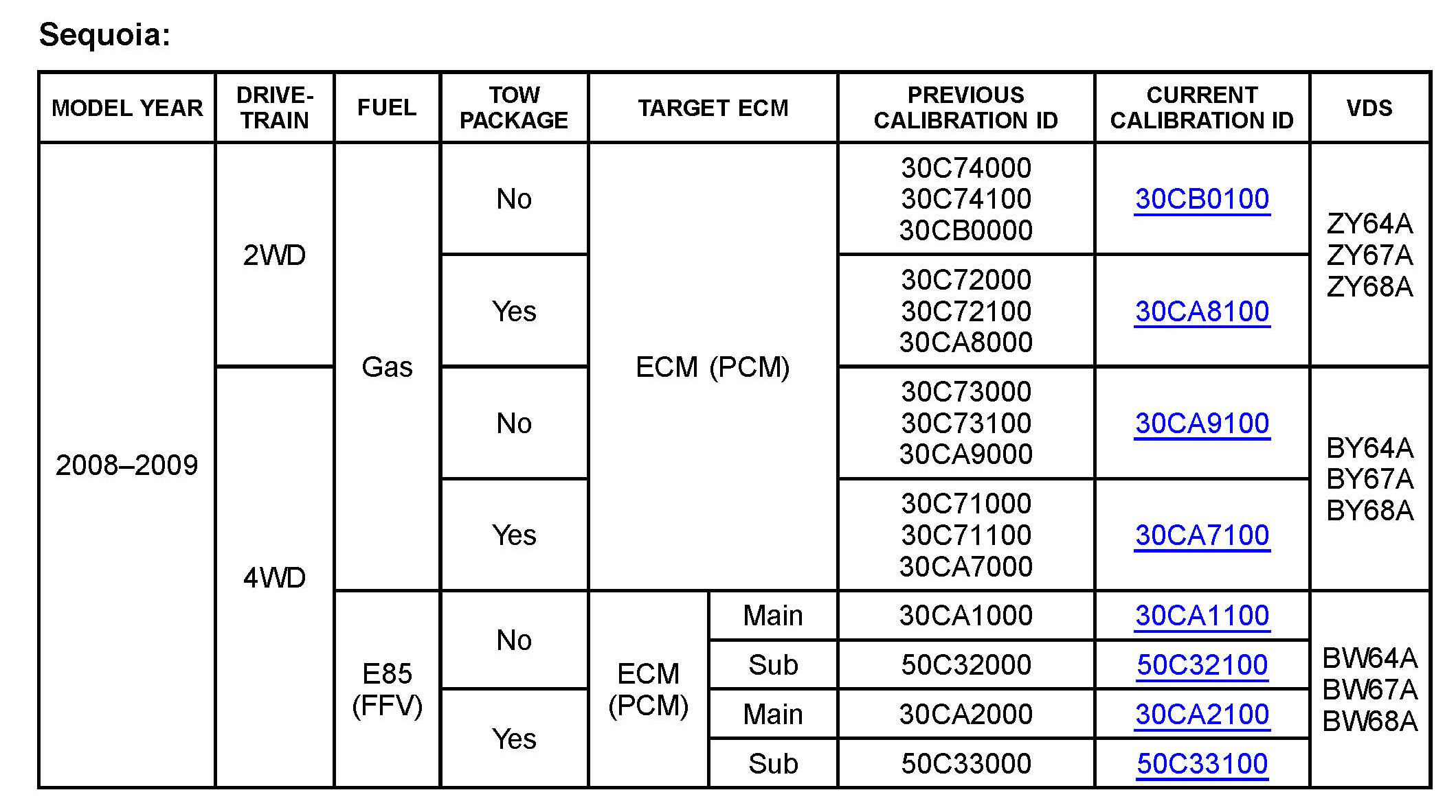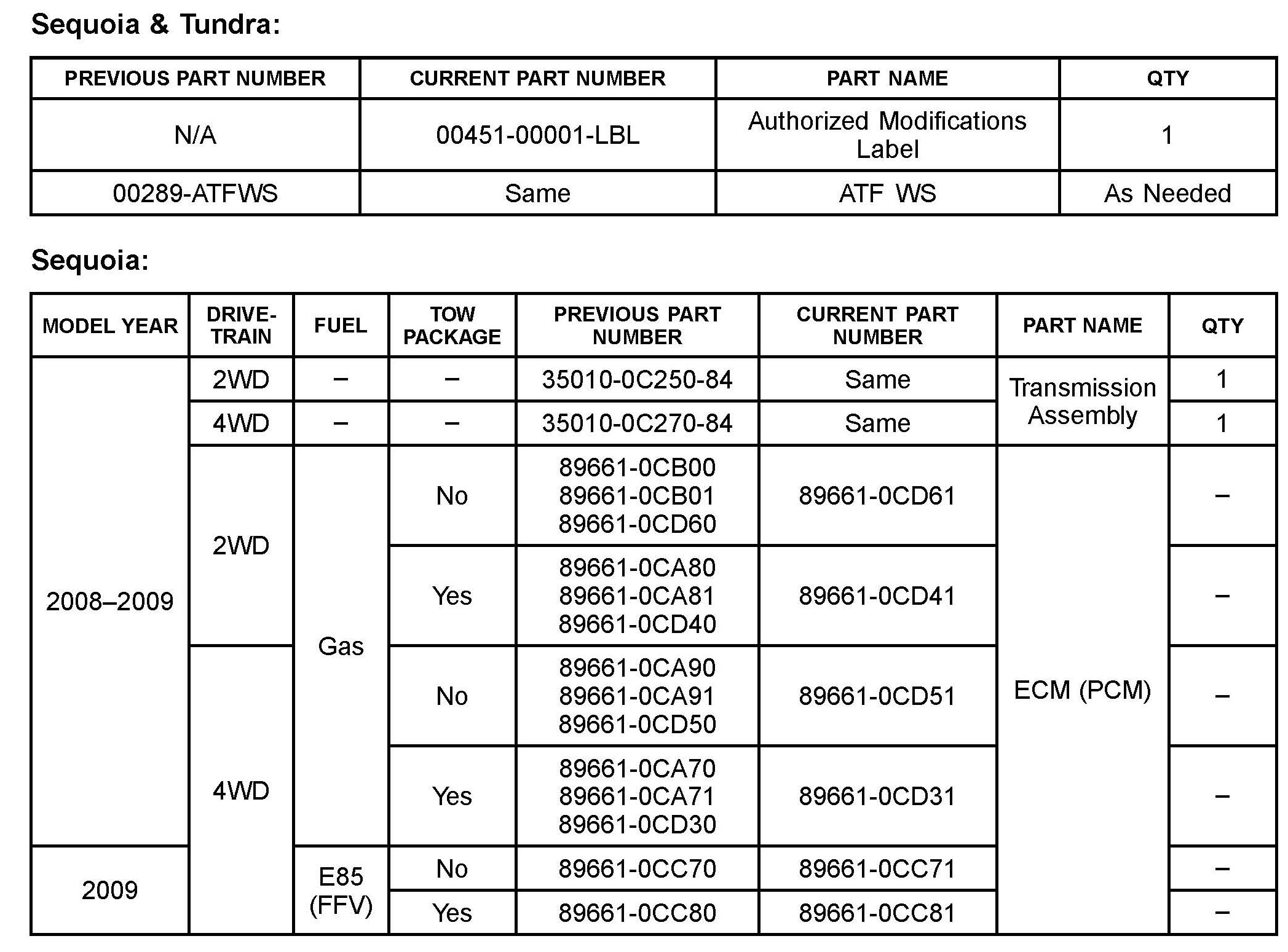 ^ Applicability has been updated to include 2008 - 2009 model year Sequoia and 2007 - 2009 model year Tundra vehicles.
