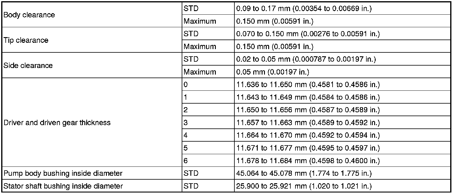 SPECIFICATIONS: AB60E AUTOMATIC TRANSMISSION / TRANSAXLE: SERVICE DATA