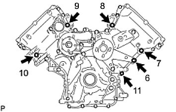 Tighten the 6 bolts labeled 6 to 11 in several steps in the sequence shown in the illustration.
