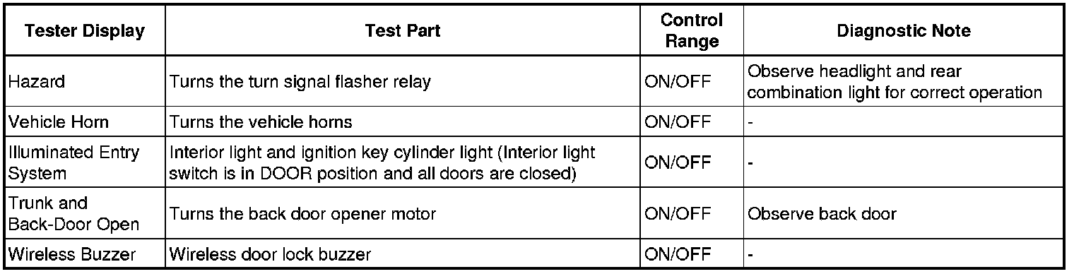 DOOR LOCK: WIRELESS DOOR LOCK CONTROL SYSTEM: DATA LIST / ACTIVE TEST