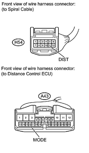 3. CHECK HARNESS AND CONNECTOR (DISTANCE CONTROL ECU - SPIRAL CABLE)