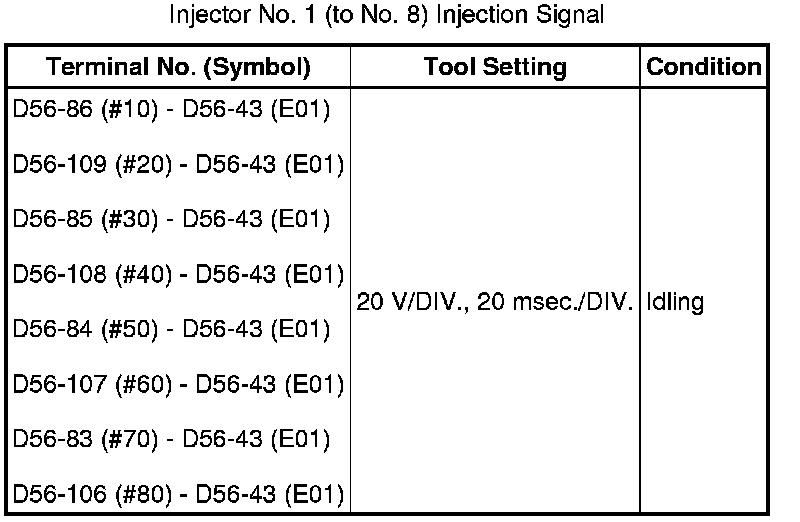 HINT: If the waveform is not similar to the illustration, check the waveform again after idling for 10 minutes or more.