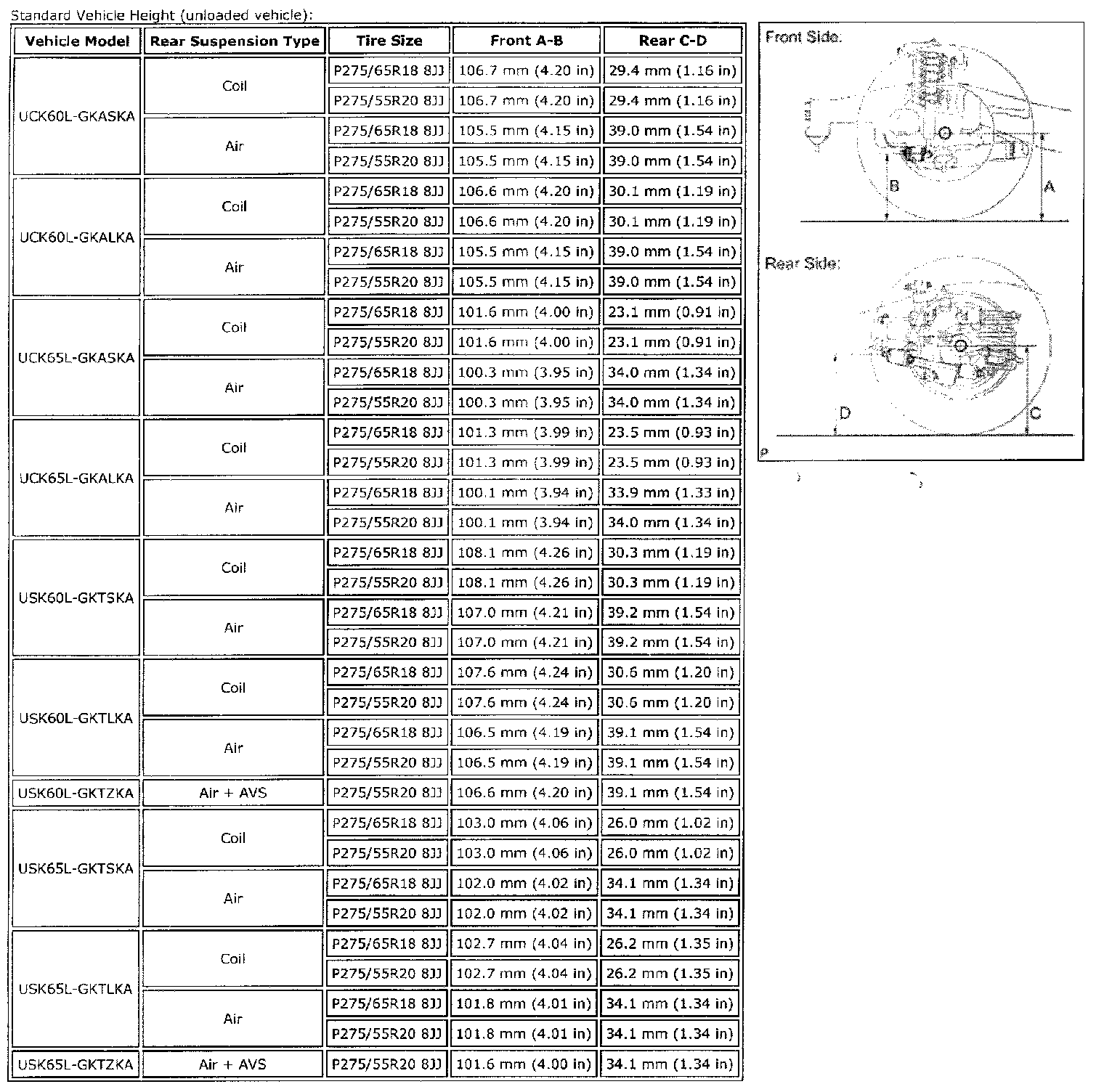 Standard Vehicle Height: