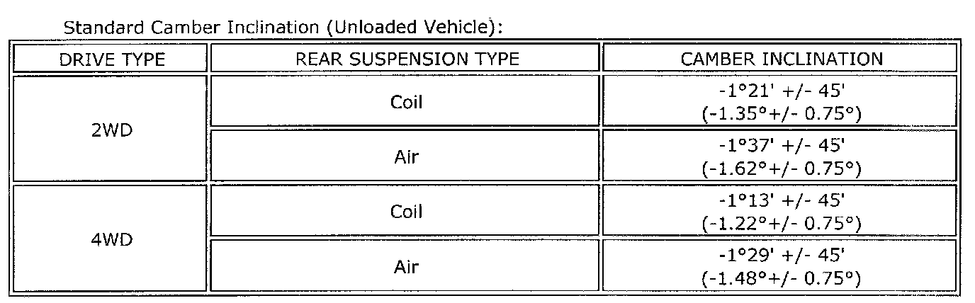 Rear Camber Inclination: