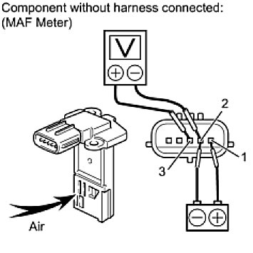 (3) Blow air into the mass air flow meter, and check that the voltage fluctuates.