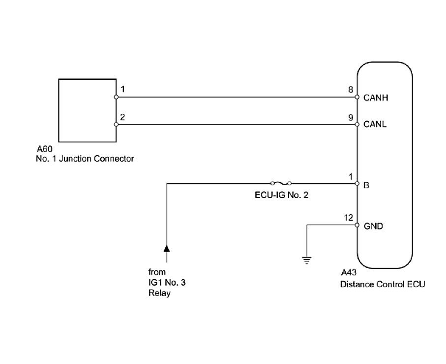 NG -- REPAIR OR REPLACE DISTANCE CONTROL ECU BRANCH WIRE OR CONNECTOR (CANH, CANL)