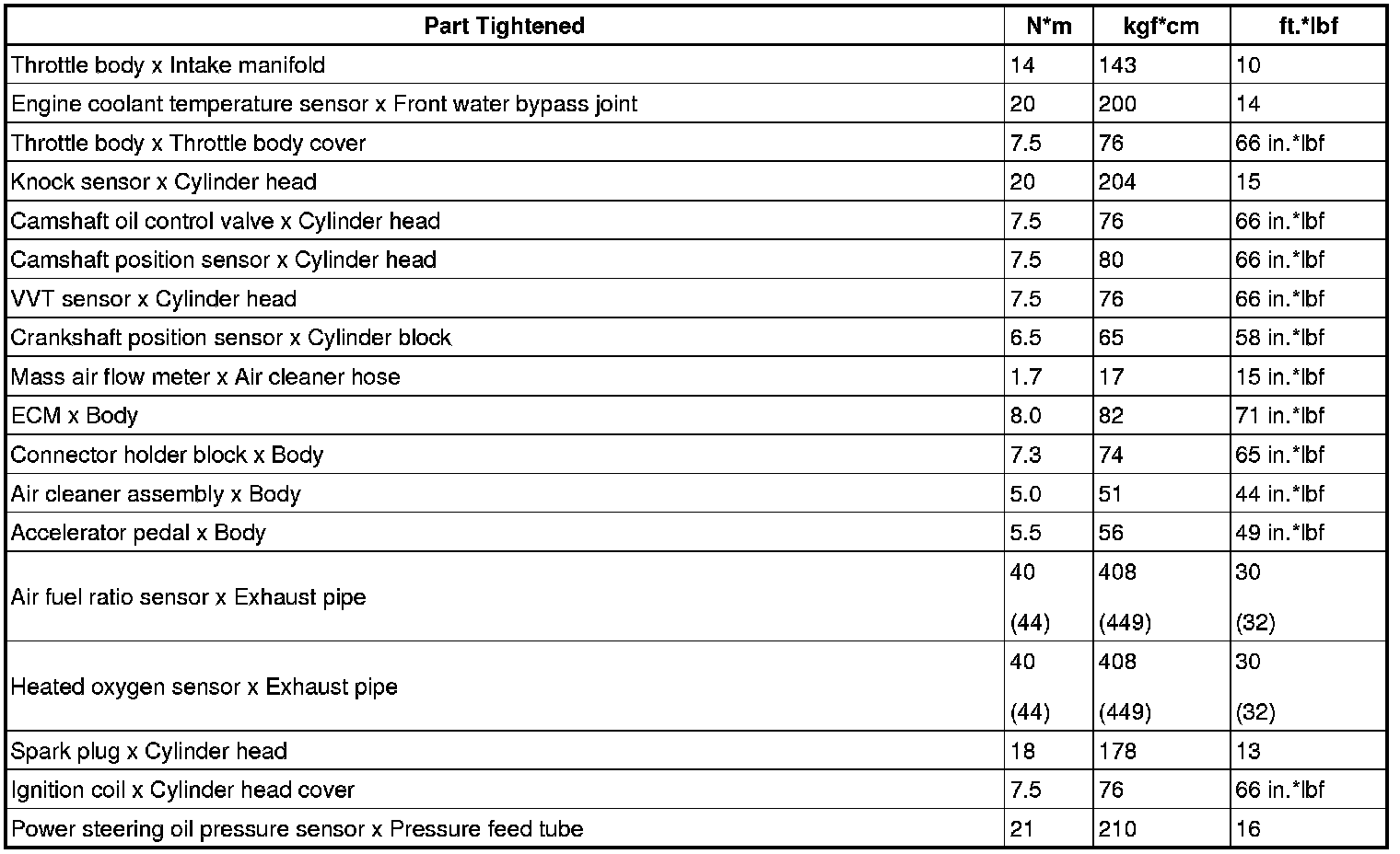 SPECIFICATIONS: 2UZ-FE ENGINE CONTROL: TORQUE SPECIFICATIONS