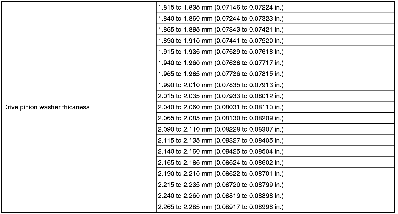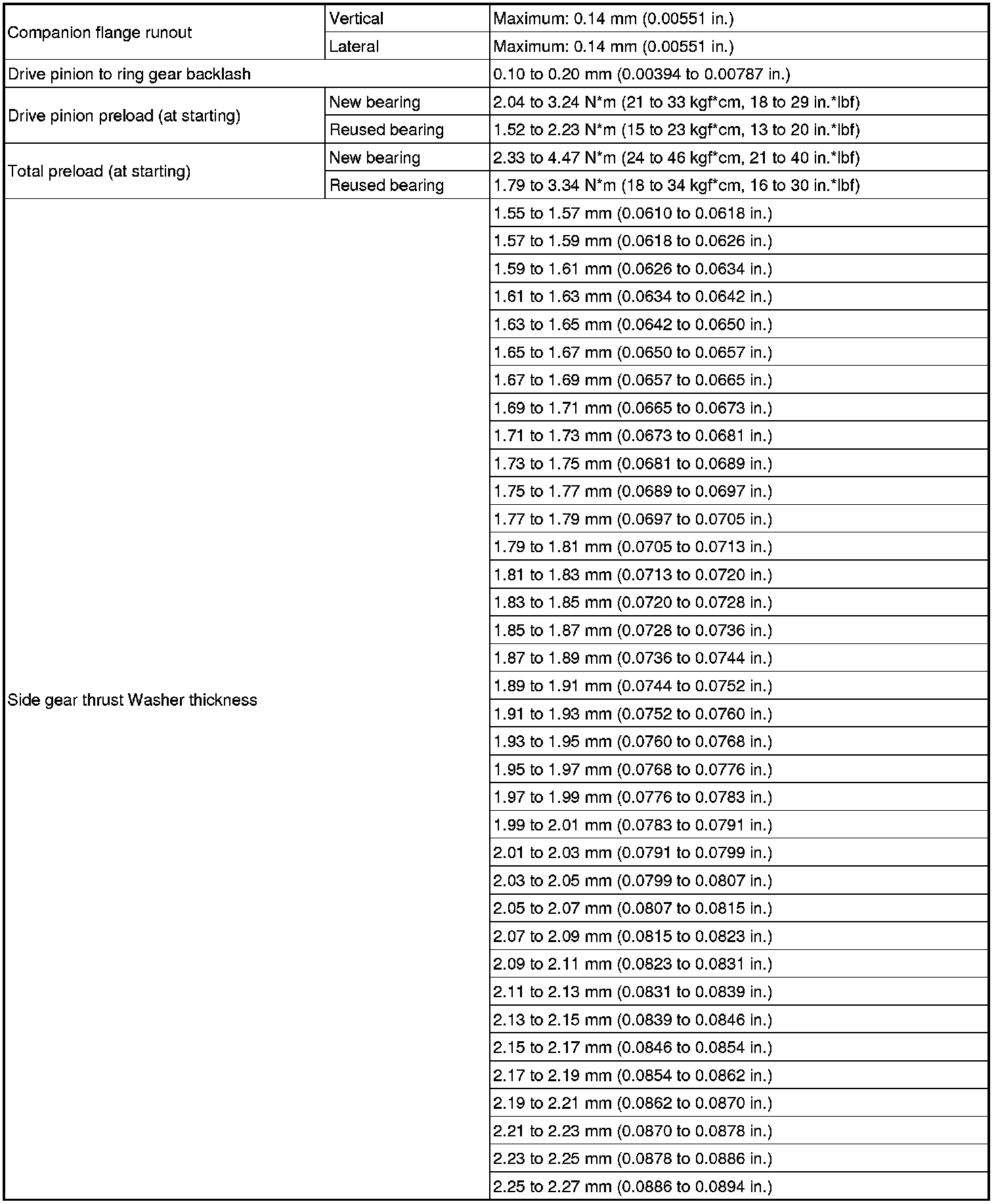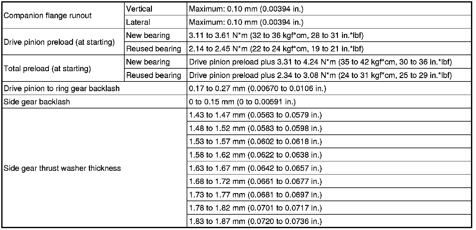 SPECIFICATIONS: AXLE AND DIFFERENTIAL: SERVICE DATA