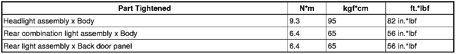SPECIFICATIONS: LIGHTING (EXT): TORQUE SPECIFICATIONS